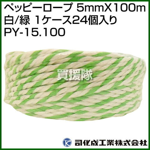 司化成工業 ペッピーロープ 5mm×100m 白/緑 1ケース24個入り PY-15.100 [カラー:白/緑] 【PET・PP ROPE つかさかせい ハイブリッドロープ 手結束材 梱包 整理 ぺっぴーろーぷ 強度 柔らい紐 伸びにくい紐 高強度紐】【おしゃれ おすすめ】