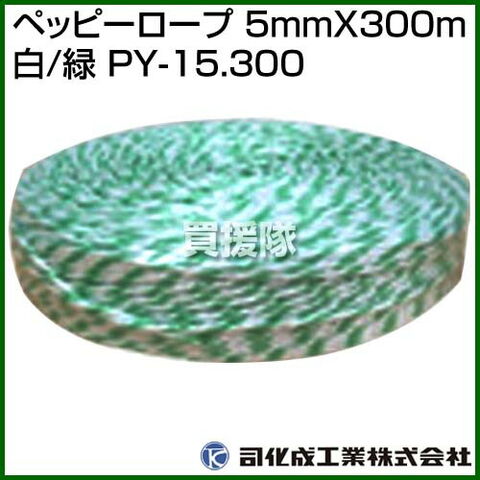 司化成工業 ペッピーロープ 5mm×300m 白/緑 PY-15.300 [カラー:白/緑] 【PET・PP ROPE つかさかせい ハイブリッドロープ 手結束材 梱包 整理 ぺっぴーろーぷ 強度 柔らい紐 伸びにくい紐 高強度紐】【おしゃれ おすすめ】
