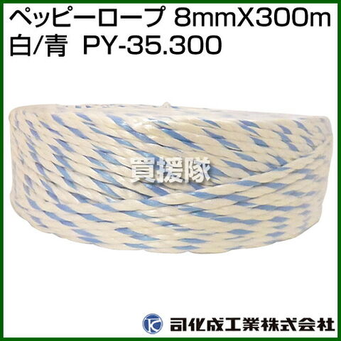 司化成工業 ペッピーロープ 8mm×300m 白/青 PY-35.300 [カラー:白/青] 【PET・PP ROPE つかさかせい ハイブリッドロープ 手結束材 梱包 整理 ぺっぴーろーぷ 強度 柔らい紐 伸びにくい紐 高強度紐】【おしゃれ おすすめ】