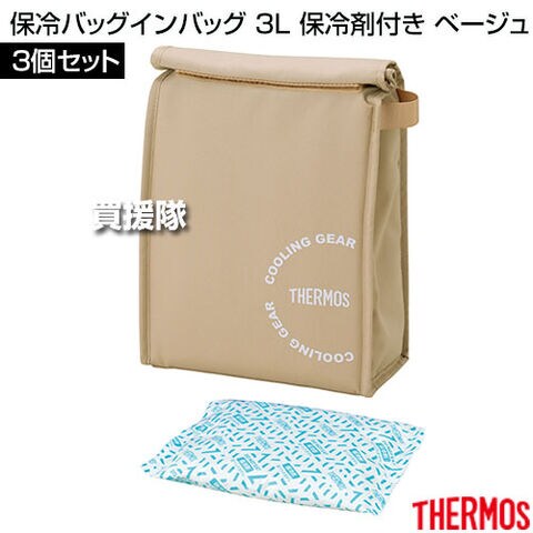 サーモス 保冷バッグインバッグ 3L 保冷剤付き ベージュ 3個セット 【THERMOS 保冷剤 氷 冷やしタオル ペットボトル 携帯用 持ち運び 収納 袋 保冷袋 小型 コンパクト 外 屋外 作業 建築現場 夏 熱中症 暑さ 対策】【おしゃれ おすすめ】