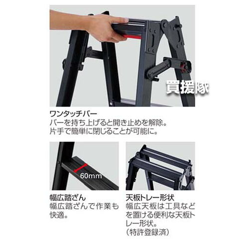 長谷川工業 はしご兼用 脚立 ブラックレーベル RHB-15a 【5段 軽量 簡単開閉 ステップ幅広 アルミ 踏み台 台 ステップ台 足場 作業台 はしご 梯子 兼用 折りたたみ 折り畳み 折畳 洗車 掃除 大掃除 ハセガワ hasegawa】【おしゃれ おすすめ】