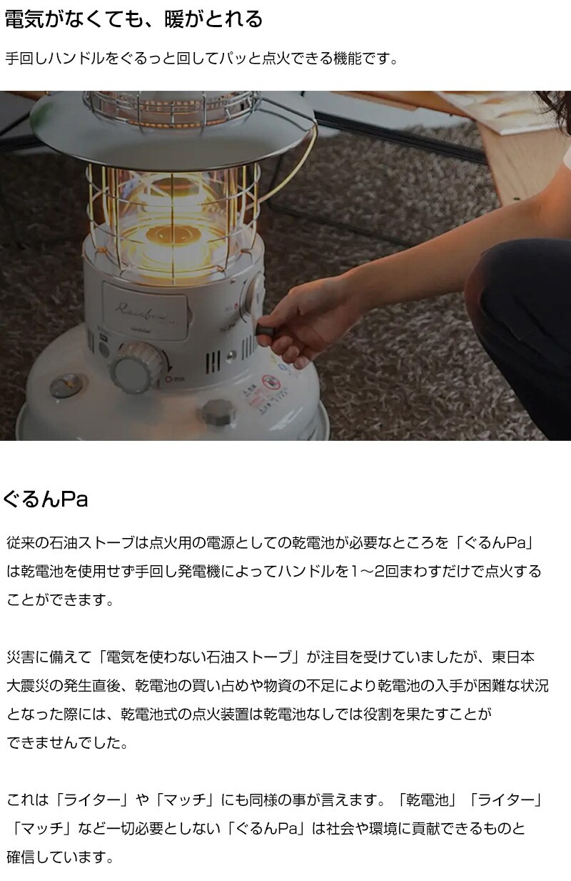 電気がなくても暖がとれる!手回し点火石油ストーブ