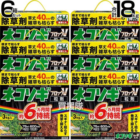 【6箱セット 合計18kg】レインボー薬品 ネコソギブロックV 粒剤 3kg 【除草剤 根までも枯らす 粒のまま地面にパラパラまくタイプ そのまま散布 約4~6ヶ月間持続 スギナ 頑固な雑草も枯らす 雑草対策 園芸 薬剤 安心 顆粒 黄 シリーズ ネコソギエースv粒剤 の後継品 おすすめ】