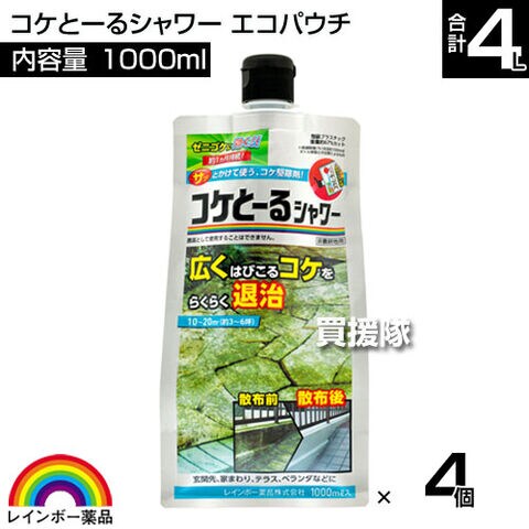 レインボー薬品 コケとーるシャワー エコパウチ 1000ml×4個 【そのまま散布するだけ シャワータイプ 苔 コケ ゼニゴケ 駆除剤 約1ヶ月持続 玄関周り コンクリート テラス 庭 駐車場 ベランダ 玄関先 墓石 タイル】【おしゃれ おすすめ】