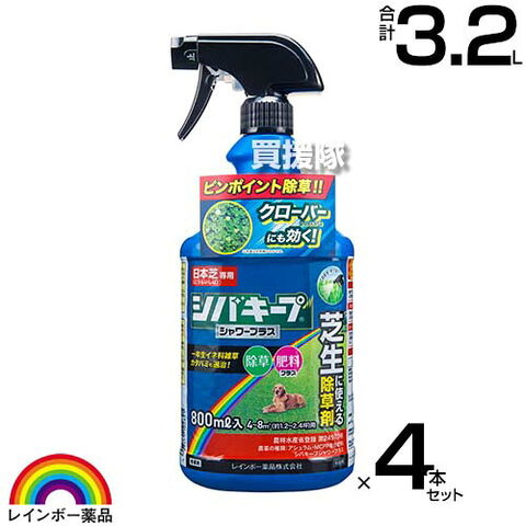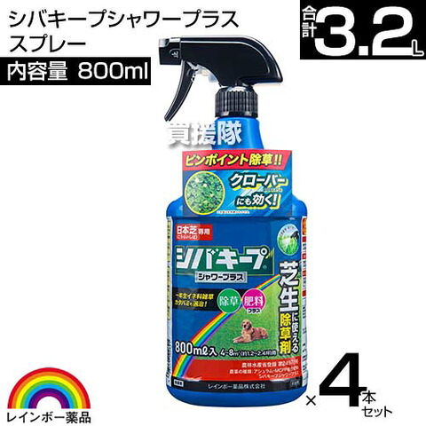 レインボー薬品 シバキープシャワープラス 800mlスプレー×4本セット 【除草剤 肥料成分入り 日本芝 高麗芝 こうらいしば 芝生の雑草 雑草対策 芝生 手入れ クローバー シロツメクサ カタバミ】【おしゃれ おすすめ】