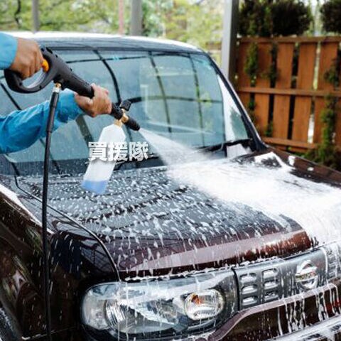 高圧洗浄機用、洗剤に水と空気を混ぜて泡状にして対象物に噴射します
