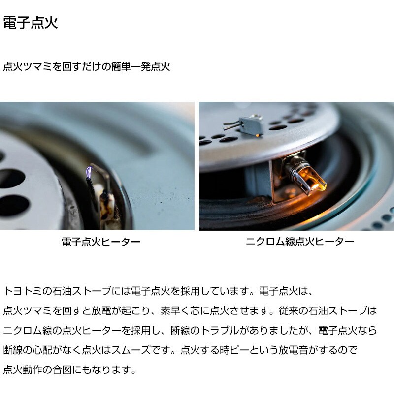 コンパクトなのにハイパワー。持ち運びに便利なキャリングハンドルタイプの石油ストーブ。