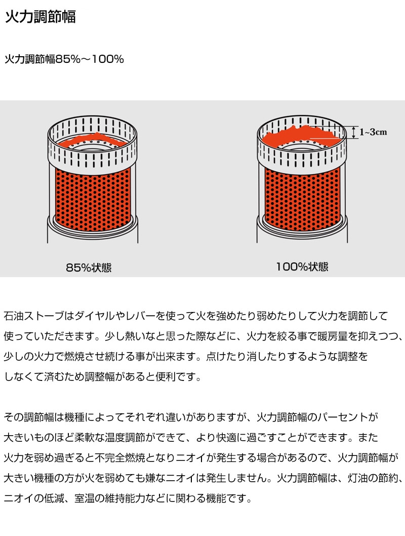燃焼継続時間 約12.9h 最大燃焼~約15.2h 最小燃焼