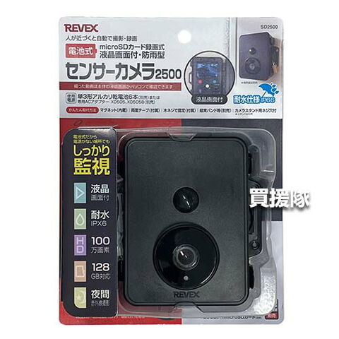 リーベックス(Revex) センサーカメラ2500 液晶画面付き 2個セット microSDカード録画式 SD2500 【防犯 侵入者 覗き 泥棒 ストーカー 農作物 農園 車上 荒らし 対策 防雨 防水 仕様 人感センサー 感知 動画 録画 撮影】【おしゃれ おすすめ】