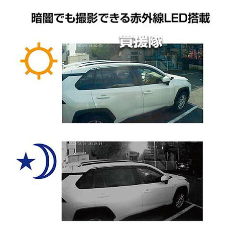 電池寿命 動画(15秒)を1日10回録画して約3カ月(夜間撮影が多い場合は赤外線LED点灯のため短くなります)