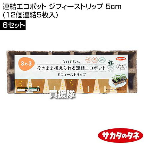 サカタのタネ 連結エコポット ジフィーストリップ 5cm (12個連結5枚入)×6セット 【ポットごとそのまま植え付け 土になる天然素材 連結ポット 種 まき 撒き 播種 発芽 管理 タネまき 育苗 植え付け エコ 花 野菜 家庭】【おしゃれ おすすめ】