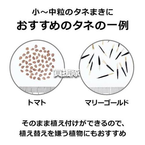 中央のくぼみにタネをまき、芽が出たらそのまま植え付けができます。自然素材のピートを主原料にし初期肥料も配合済みです。