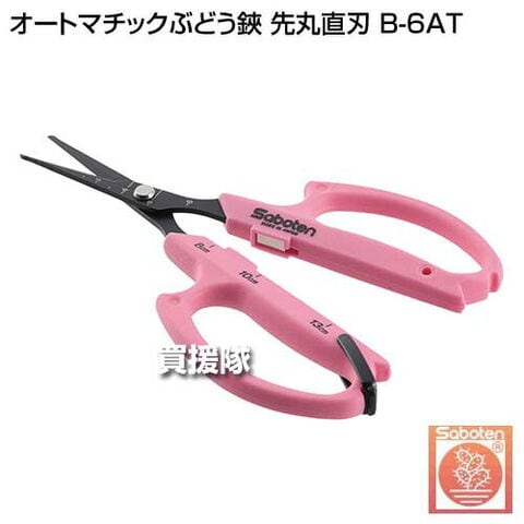 サボテン オートマチックぶどう鋏 先丸直刃 B-6AT 【マグネット 反発付き 摘粒作業が楽々 ブドウ 葡萄 鋏 ハサミ はさみ 目盛り付き ステンレス製 フッ素コート シブがつきにくい 摘粒 房作り 収獲 農作業 農業用 果樹】【おしゃれ おすすめ】