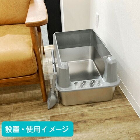 ヒラキ 猫 トイレ 大型 ステンレス製 スコップ付 SH2803 【ネコ ねこ トイレ 猫用 キャットトイレ ペット 用 飛び散らない お手入れしやすい 清潔 掃除しやすい スコップ 本体 トイレセット ハーフカバー ステンレス鋼 錆びにくい おしゃれ おすすめ】