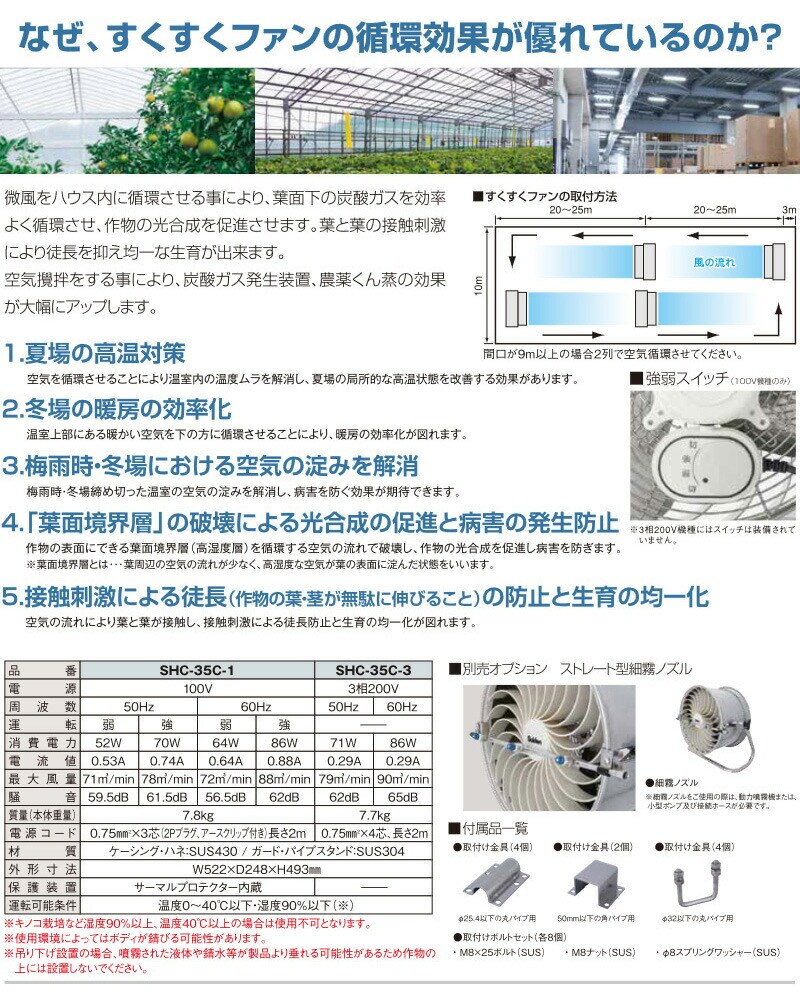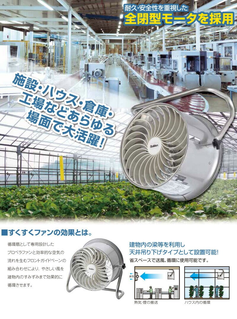 スイデン すくすくファン 100V SHC-35C-1 【農業用 ハウス 用 扇風機 送風機 循環扇 循環ファン サーキュレータ 熱気 暖房 煙 炭酸ガス 空気 循環 全閉型 施設 倉庫 工場 夏 冬 ステンレス製 耐久 安全 園芸 おしゃれ おすすめ】