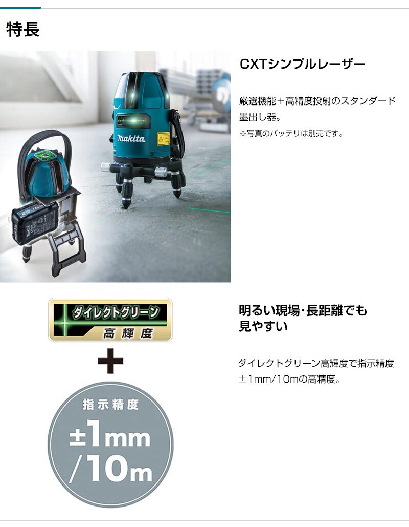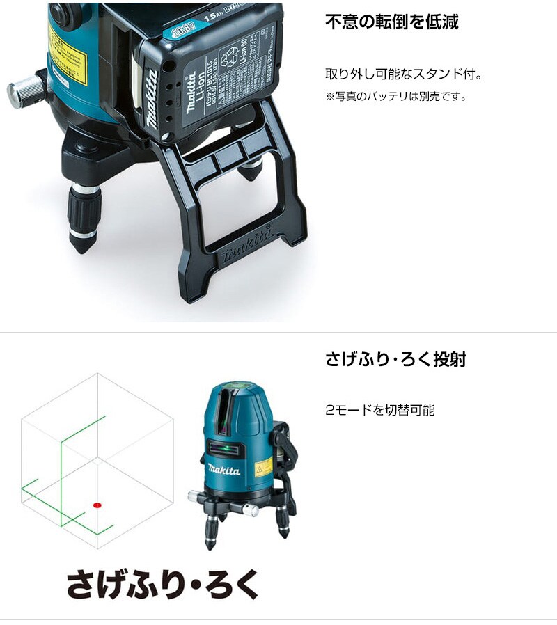 【シンプルレーザー 厳選機能 高精度投射 ダイレクトグリーン 高輝度 受光気 さげふり ろく バイス アルミケース付 シンバル機構 下部レーザー 屋外使用可 充電式 コードレス 工具 電動工具 DIY ツール 工具 用品 makita 純正品】