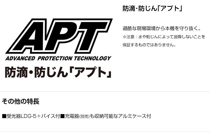 付属品 受光器 LDG-5、バイス、受光器お試し用9V電池、収納ケース、肩掛けベルト、レーザー用透視メガネ