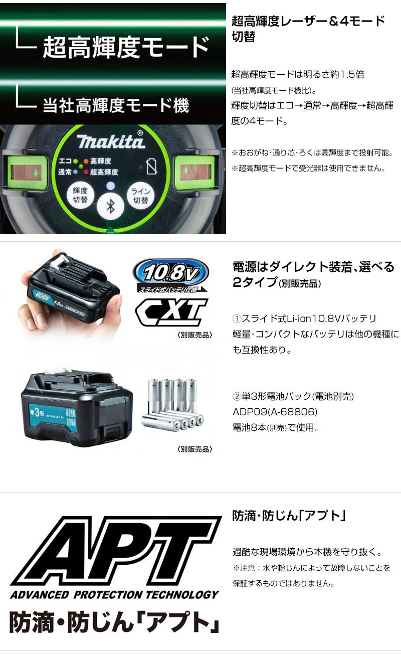 【アプリ対応 省力化 高精度 4モード 遠隔操作 遠隔切替 ダイレクトグリーン 超高輝度 おおがね 通り芯 ろく リモコン追尾受光器 バイス アルミケース付 シンバル機構 下部レーザー 屋外使用可 充電式 コードレス 工具 電動工具 DIY ツール 工具 用品 makita 純正品】