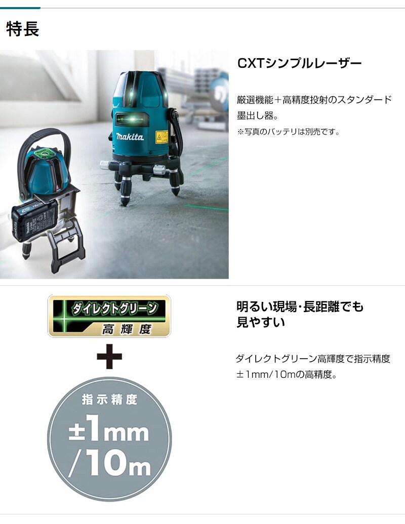 【シンプルレーザー 厳選機能 高精度投射 ダイレクトグリーン 高輝度 受光気 クロスライン ろく バイス アルミケース付 シンバル機構 下部レーザー 屋外使用可 充電式 コードレス 工具 電動工具 DIY ツール 工具 用品 makita 純正品】