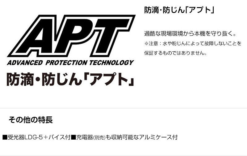 付属品 受光器 LDG-5、バイス、受光器お試し用9V電池、収納ケース、肩掛けベルト、レーザー用透視メガネ