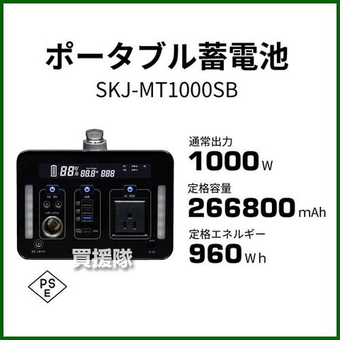 エスケイジャパン ポータブル電源 蓄電池 1000/970Wh SKJ-MT1000SB 【ポータブル 電源 蓄電池 蓄電器 蓄電源 充電 充電器 家庭用 電源 発電機 防災グッズ 非常用 災害 停電 大容量 アウトドア キャンプ 携帯 電動工具 DIY SKJ SKジャパン】【おしゃれ おすすめ】