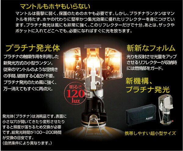 [圧電点火方式][コンパクト収納][プラチナ発光][マントル不要][ホヤ不要]