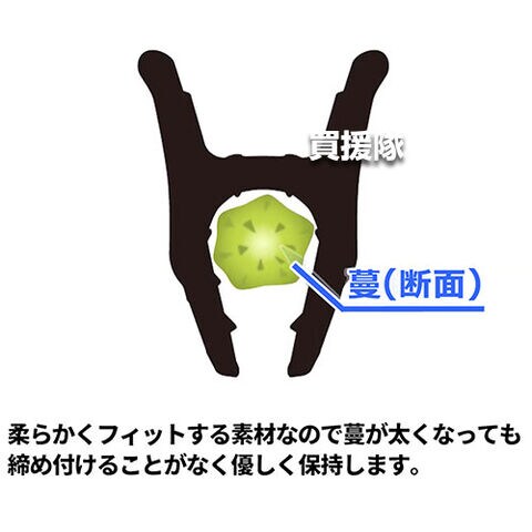 ●柔らかくフィットする素材なので蔓が太くなっても締め付けることなく優しく保持します。