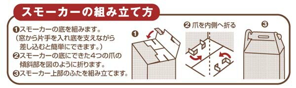 段ボール製の燻製器シリーズは温燻のみですが、リーズナブルな価格なので、燻製の入門用にも最適です。使い捨てではなく、繰り返し何度も使えます。段ボールは食材の余分な水分をしっかり吸収するという素材上のメリットもあります。