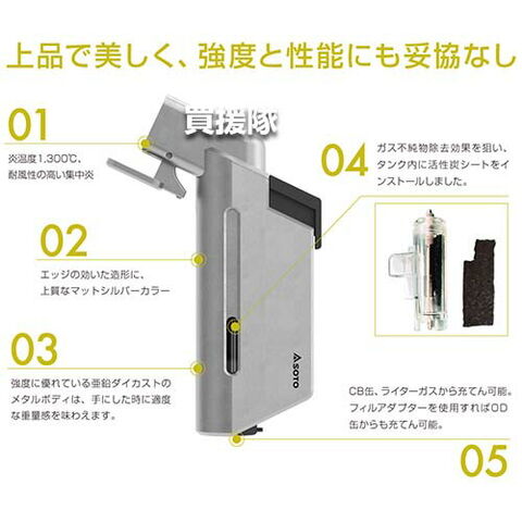 【超小型 コンパクト 強力 耐風 火口 横型 燃料 充てん 充填 補充 式 CB缶 OD缶 ライターガス ライター アウトドア キャンプ BBQ 焚き火 着火 料理の焦げ目付け 調理器具 バーべキュー用品】