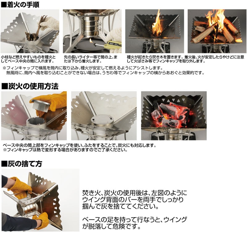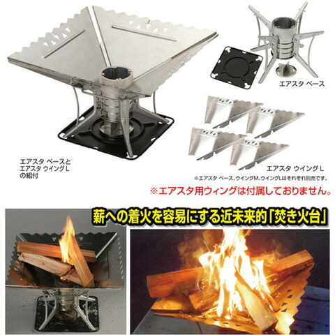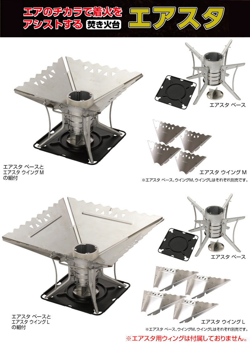 当商品のエアスタベースのみでは「焚き火台」として使用できません。別売品の専用ウイングMまたは、ウイングLをご用意ください。