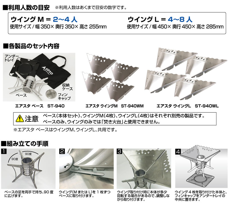 関連製品(別売) エアスタ用ウイングM(ST-940WM)、ウイングL(ST-940WL)