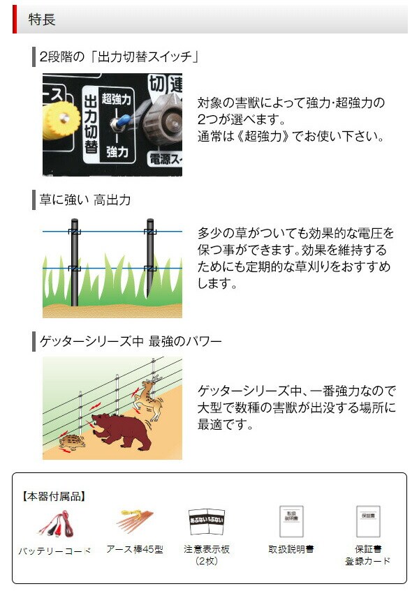 品名 電気牧柵機 ハイパワーゲッター 【超強力型】 No.105