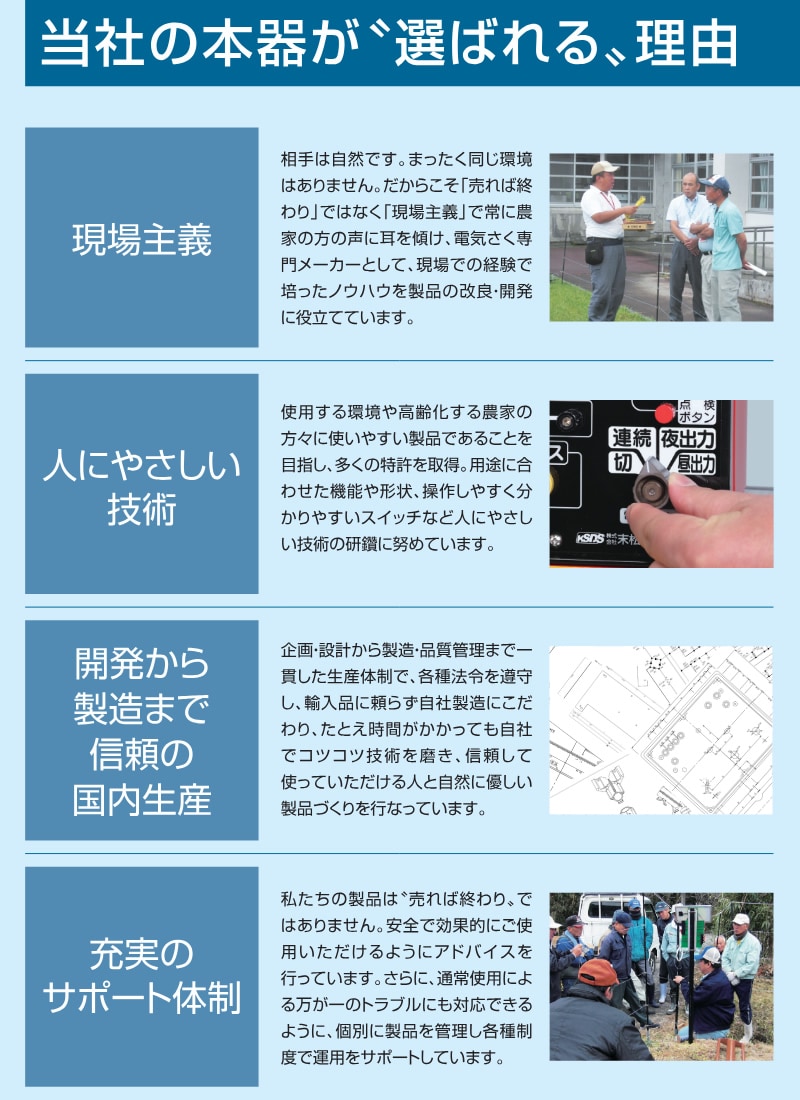 明け方の害獣を防止して、日中の作業時は自動で通電が止まります。(電池・バッテリーも節約)