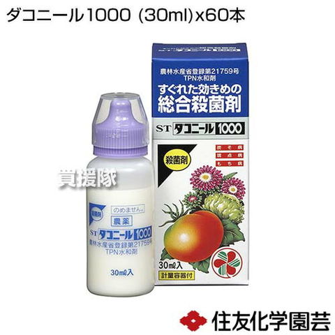 住友化学園芸 ダコニール1000 (30ml)×60本 【殺菌剤 かび類 糸状菌 もち病 炭そ病 斑点病 対策 総合殺菌剤 花 野菜 果樹 ばら バラ 薔薇 きく 芝 トマト きゅうり ナス】【おしゃれ おすすめ】