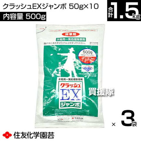 住友化学園芸 クラッシュEXジャンボ 500g(50g×10)×3袋セット 【あぜから投げ込むだけ 水稲 すいとう 水田 田んぼ 稲 イネ 水稲栽培 用 除草剤 雑草 草 対策 ノビエ 水田一年生雑草 マツバイ ホタルイ ウリカワ ミズ】【おしゃれ おすすめ】