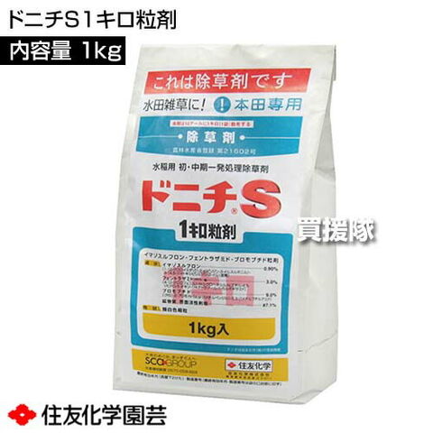 住友化学園芸 ドニチS1キロ粒剤 1kg 【田植直後 ノビエ 2.5葉期 水稲 すいとう 水田 田んぼ 稲 イネ 水稲栽培 用 除草剤 雑草 草 対策 SU抵抗性雑草 水田一年生雑草 マツバイ ホタルイ ウリカワ ミズガヤツリ】【おしゃれ おすすめ】