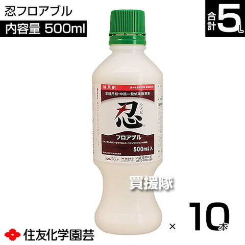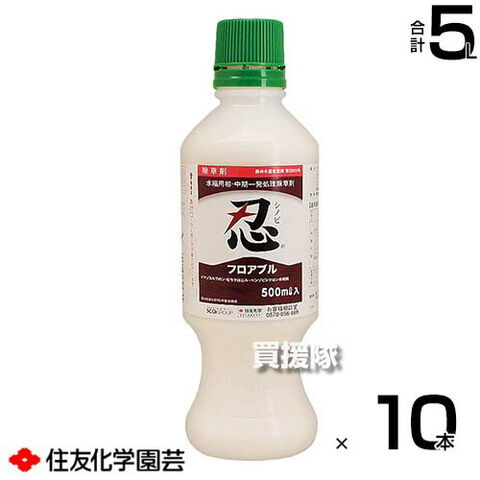 住友化学園芸 忍フロアブル 500ml×10本セット 【多植直後 ノビエ 2.5葉期 水稲 すいとう 水田 田んぼ 稲 イネ 水稲栽培 用 除草剤 雑草 草 対策 SU抵抗性雑草 ノビエ 多年生 カヤツリグサ 多年生難防除雑草 クログワイ】【おしゃれ おすすめ】