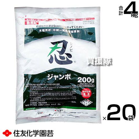 《法人限定》住友化学園芸 忍ジャンボ 200g×20袋セット 【多植直後 ノビエ 2.5葉期 直播 水稲 すいとう 水田 田んぼ 稲 イネ 水稲栽培 用 除草剤 雑草 草 対策 SU抵抗性雑草 ノビエ 多年生 カヤツリグサ】【おしゃれ おすすめ】