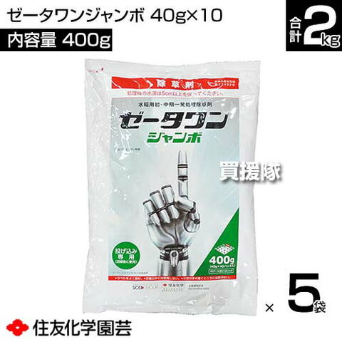 住友化学園芸 ゼータワンジャンボ 400g(40g×10)×5袋セット 【水稲 すいとう 水田 田んぼ 稲 イネ 水稲栽培 用 除草剤 雑草 草 対策 ノビエ 一年生雑草 多年生雑草 SU抵抗性雑草 マツバイ ホタルイ ヘラオモダカ】【おしゃれ おすすめ】