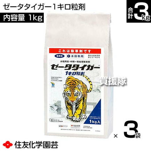 住友化学園芸 ゼータタイガー1キロ粒剤 1kg×3袋セット 【高葉齢 ノビエ 3葉期 水稲 すいとう 水田 田んぼ 稲 イネ 水稲栽培 用 除草剤 雑草 草 対策 田植同時処理 ホタルイ コナギ アゼナ SU抵抗性雑草】【おしゃれ おすすめ】