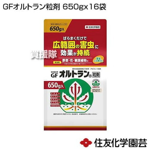 住友化学園芸 GFオルトラン粒剤 650g×16袋 【殺虫剤 殺虫 害虫 防除 対策 家庭用 園芸 家庭菜園 用 トマト なす きゅうり アブラムシ ヨトウムシ 花 野菜 草花 観葉 花木 庭木 芝生 薬剤登録 農林水産省登録 粒剤 アオムシ アザミウマ類】【おしゃれ おすすめ】