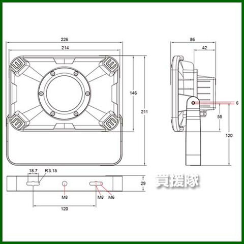 対応オプション(別売品) OP-002※1、OP-003、OP-011、OP-SVS ※1.投光器脚部の横穴にマグネットを2個で取り付けて下さい。