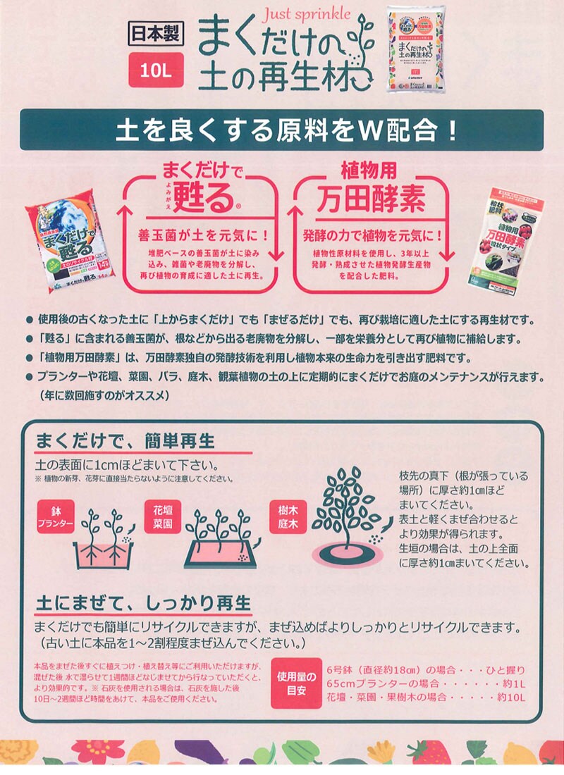 【万田酵素 コラボ まくだけで甦る 土のリサイクル材 土 栽培 発酵 微生物 堆肥 たい肥 粒状 そのまままくだけ 野菜 果樹 庭木 庭 芝生 植物 畑 花壇 プランター】