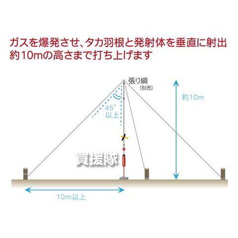 10mの高さに飛び上がるタカ羽根と発射体が鳥を威嚇!