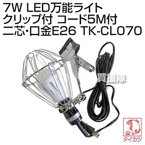 鯛勝産業 7W LED万能ライト クリップ付 コード5M付 二芯・口金E26 TK-CL070 【投光器 LED 作業灯 工事 工事現場 夜間 工事用 屋外 屋外用】【おしゃれ おすすめ】