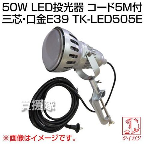 鯛勝産業 50W LED投光器 コード5M付 三芯・口金E39 TK-LED505E 【投光器 LED 作業灯 工事 工事現場 夜間 工事用 屋外 屋外用】【おしゃれ おすすめ】