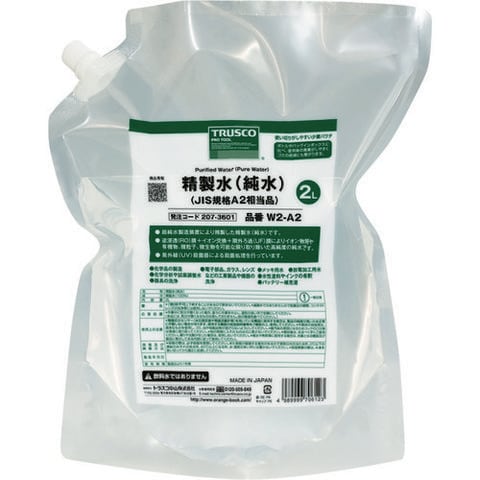 トラスコ中山(株) TRUSCO 精製水(純水)2L パウチタイプ JIS規格A1~2相当品 W2-A2 【DIY 工具 TRUSCO トラスコ 】【おしゃれ おすすめ】