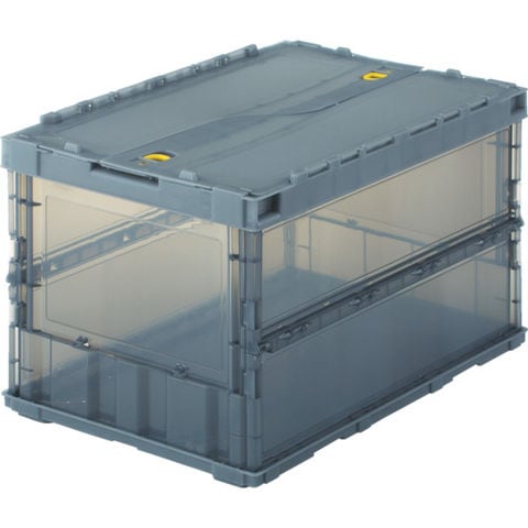 品名 TRUSCO オリコン 薄型折りたたみコンテナ スケルコン 50L ロックフタ付 透明ブラック 黒