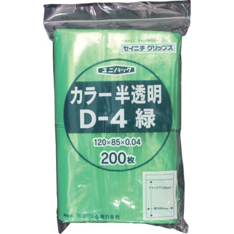 品名 セイニチ チャック付ポリ袋 ユニパック D-4 半透明緑 縦120×横85×厚さ0.04mm 200枚入