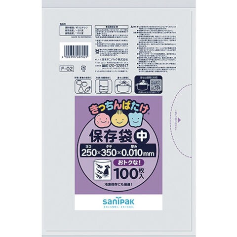 品名 サニパック F-02きっちんばたけ保存袋(中)半透明100枚